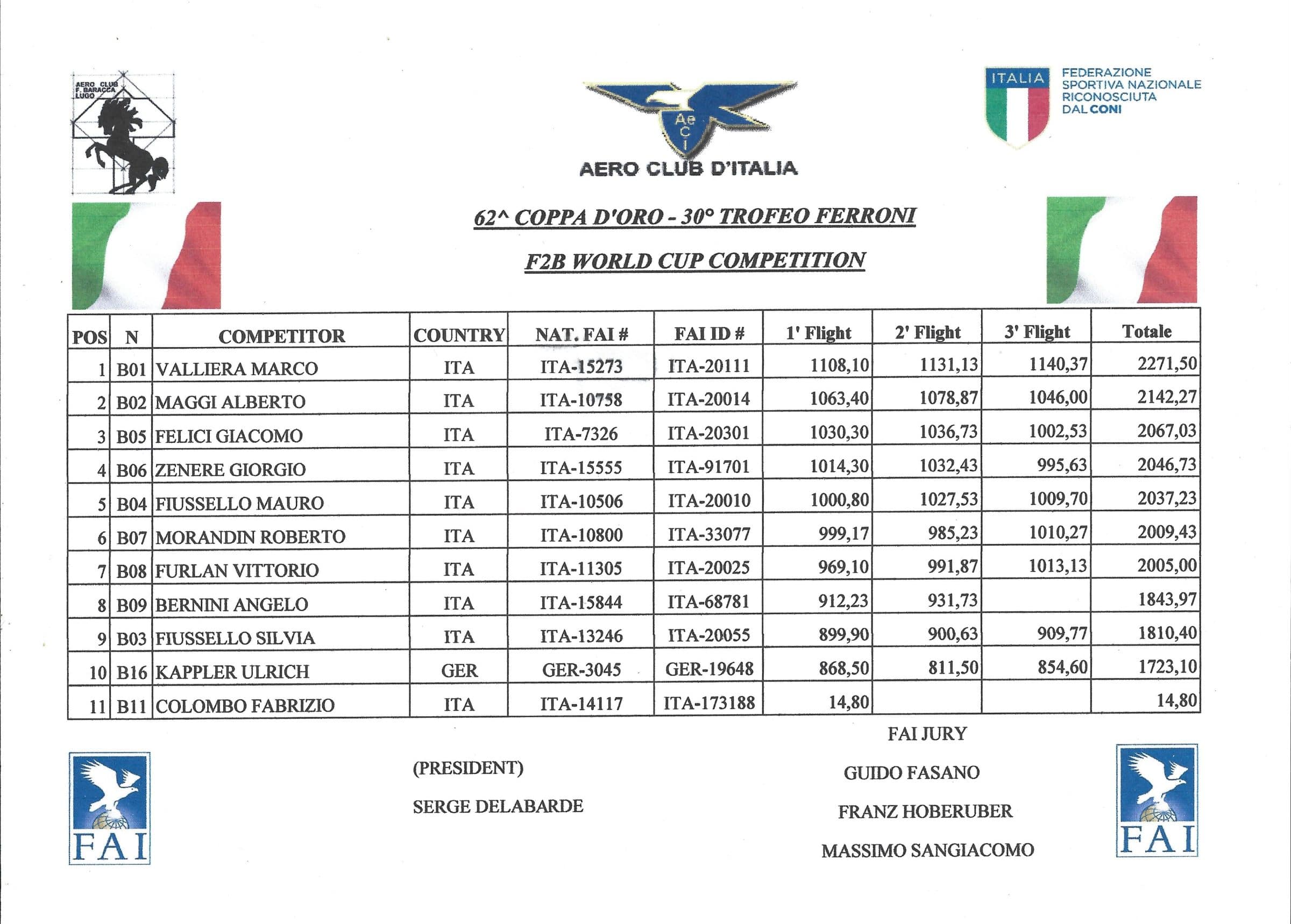 Classifiche/Results: F2A F2B F2B (Camp.Italiano) F2C & F2F F2D (anche Camp.Italiano)