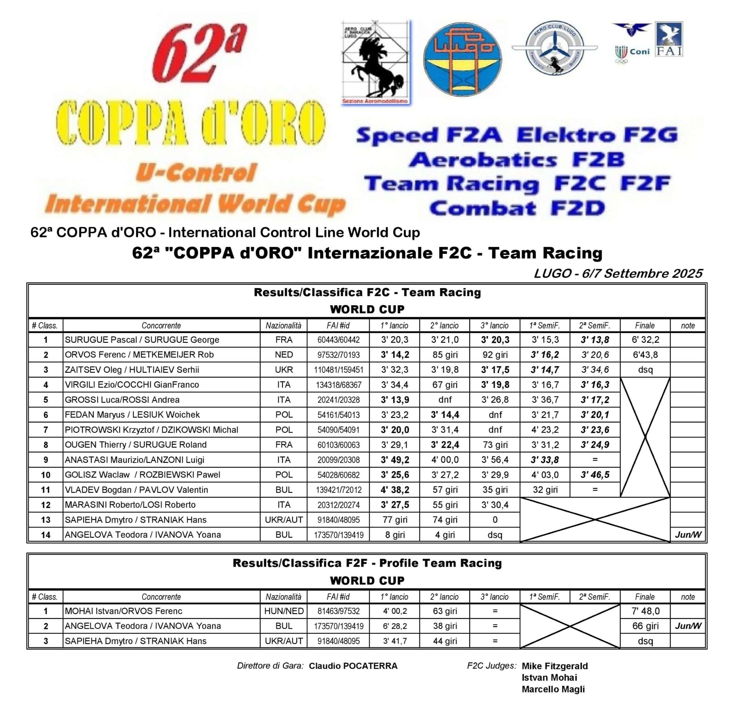 12° “Lugo GOLD CUP F2D” Combat“F2F LUGO 2025” Profile Team Racing