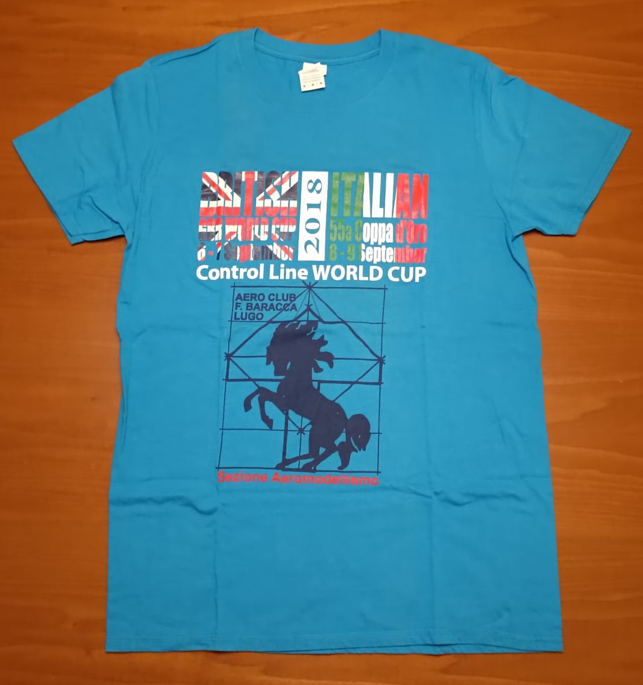 AZZURRO CIELO / SKY BLUE BRITISH 2018 ITALIAN 55' COPPA d'ORO Control Line WORLD CUP Aero Club 'F.Baracca' LUGO Sezione Aeromodellismo | taglie disponibili available sizes: 5 S 1 M 2 XL 1 XXL | |
