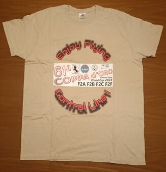 ![]() | BIANCO / WHITE "Enjoy Flying Control Line!" 61ª COPPA d'ORO Control Line World Cup 2024 F2A F2B F2C F2F | taglie disponibili available sizes: 3 XL 1 XXL |