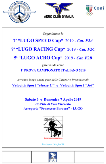 Per quanto concerne lo svolgimento della gara, indicativamente, i due lanci previsti per le nuove categorie possono essere inseriti dopo il primo e terzo lancio F2A per la categoria “Velocità Sport Classe C” e dopo il secondo e quarto lancio per la categoria “Velocità Sport Jet”